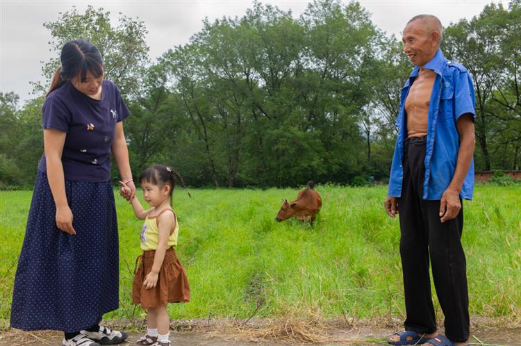 次日清晨七点多我才起床,母亲早已备好热腾腾的早饭。饭后,我提议去探望三娘舅、三娘妗和小娘妗。出门采购时,母亲说她心里有数,不让我插手挑选,我便顺从地跟在她身后。房车停稳后,我先下车准备扶母亲,她却在车里细心挑选要带给三舅的东西。几分钟后,我扶着她下车,见她双手提着物品,便赶紧接了过来。我俩沿着小径走到三舅家,只见94岁的三舅正独自在小木板上吃早饭。他穿着件泛旧的白衬衫,精神却尚可,见我们到来,神情没太多变化,只是静静看着我。母亲扶着他的肩膀问:“还认识我吗?”三舅摇了摇头。我指着母亲再问,他却立刻应道:“这是红英嘛!”2023年我曾在三舅院里住了半年,朝夕相处,可仅仅两年过去,他已明显苍老许多,状态远不如前。但这位九旬老人,满头白发依旧浓密,面色红润,神态温和又透着刚毅,衣着朴素却难掩昔日的公子气质。看着兄妹俩闲聊,平日里没什么表情的他,脸上也渐渐露出了笑容。告别三舅和三娘妗,我们又驱车前往东山头柯桥头看望小娘妗。几分钟后抵达,沿着小径往小舅家走时,远远便看见小娘妗坐在路边与邻居闲聊。她望见我们,立刻笑着打招呼,随后引我们进屋。我走进熟悉的卧房,发现窗边的窄床换成了宽床,老房子里东西虽多,却收拾得整整齐齐。两位老人坐在床边闲谈时,我按惯例去周边邻居家转了转,随手拍了些乡村景致。