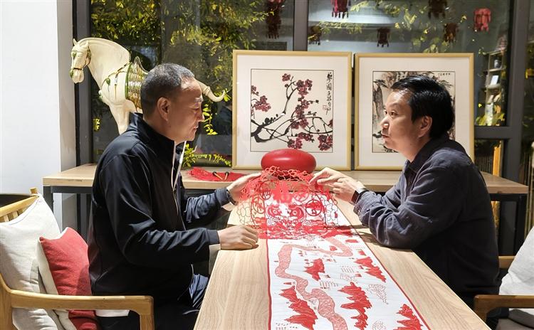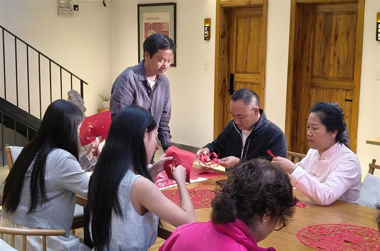 王会长表示,选择在重渡沟非遗主题民宿举办此次活动,意在让剪纸回归生活场景,让参与者在山水相依的自然环境中,感受传统手艺与当代生活的完美融合。